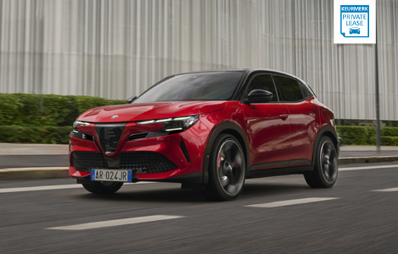 *Prijzen incl. BTW op basis van Alfa Romeo Private Lease via Stellantis Financial Services met een looptijd van 72 maanden en 5.000 kilometer per jaar. De uitvoering van de auto kan afwijken van de gebruikte afbeelding. Kijk voor alle voorwaarden op privatelease.alfaromeo.nl. Fouten en (prijs)wijzigingen voorbehouden.