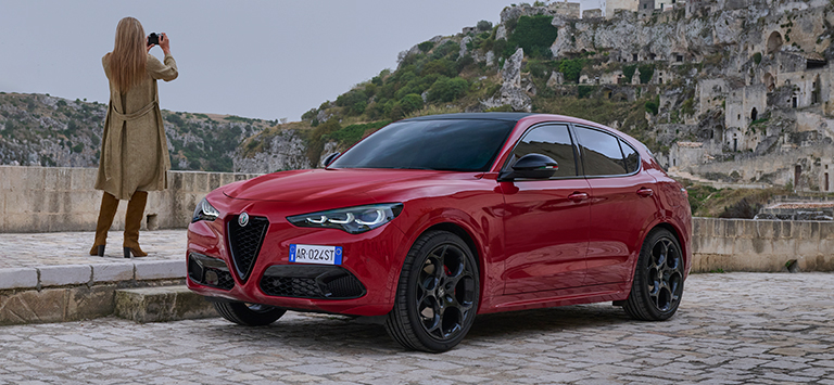 Brandstofverbruik Alfa Romeo Stelvio Tributo Italiano (l/100 km): 8,9 - 5,7; CO₂-uitstoot (g/km): 202 - 150.Typegoedkeuringswaarden bepaald op basis van de WLTP gecombineerde cyclus, gehomologeerd per 21.11.2022. De vermelde waarden zijn ter vergelijking.