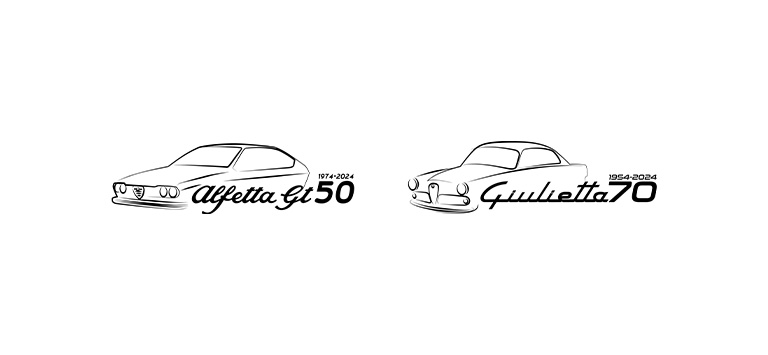 Ter ere van deze mijlpalen, ontwierp het Alfa Romeo Centro Stile twee speciale logo’s als eerbetoon aan deze historische modellen. De emblemen zijn voorzien van opvallende details en zijn verkrijgbaar in diverse kleuren. Ze zullen gedurende 2024 dienen als logo en symboliseren de blijvende allure van deze twee geliefde Alfa-modellen.