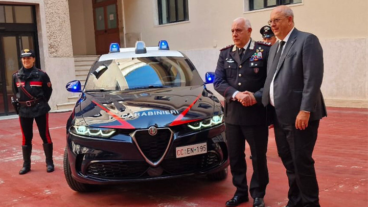 De Italiaanse militaire politie, de Carabinieri, heeft op 28 juni de eerste van 400 nieuwe collega’s verwelkomd: de Alfa Romeo Tonale Hybrid. Met deze stap wordt een nieuw hoofdstuk geschreven in de langdurige samenwerking tussen de Carabinieri en Alfa Romeo. Bovendien maken de agenten voor het eerst tijdens werktijd kennis met de kracht van plug-in hybride rijden.